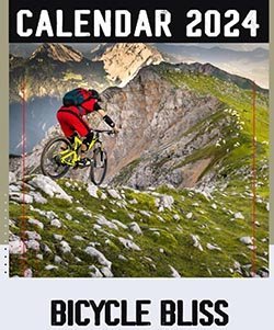 | Bicycle Bliss 2024 Calendar. Usually around $10, but click here for the best price on Amazon right now | We have gone back to wall calendars, after having been let down one too many time by electronic gadgets. We are loving the simplicity of being able to see the day, week and month at a glance, right there on the side of the fridge. The Bicycle Bliss calendar features adventure photos of cyclists around the world, paired with inspiring quotes. The publishers are Amber Lotus Publishing, an independent carbon-negative US company, which has planted ONE MILLION trees since 2008 to offset their carbon footprint | |