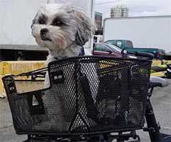 ![]() | Axiom Basket for Pets. Best price on Amazon right now: | Get your dog the gift of going along with you on your bike rides! We have personally used this one for years, and find it to be excellent, at a good price. It’s constructed out of sturdy wire, with a non-slip rubber bottom, and is rated to carry pets up to 55 pounds. Dogs are secured with a short leash, and also the cover folds closely around them |
