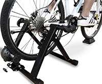 ![]() | Balance From Bike Trainer Steel Stand Indoor Trainer. Best price on Amazon right now: | This is Amazon’s no. 1 best seller in budget bike trainers. The cyclist you love can use this to turn their own outdoor bike into an indoor trainer, in just a few minutes. The trainer offers 8 levels of resistance, controlled from the handlebars. When the weather improves, simply release the quick release skewer and the bike becomes an outdoor bike again. Note that these budget trainers do tend to be noisy. If you want something quiet, you need to spend upwards of $400 (see below) |