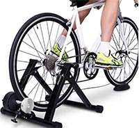![]() | Yaheetech Fluid Bike Trainer Stand. Best price on Amazon right now: | If you want to give the cyclist you love the gift of being able to train inside, this is another great option. It’s well rated for being quick and easy to assemble – compatible with any bike that has a quick-release rear wheel measuring 26'' to 28'' or 700C wheels. Strong and solid, its biggest claim to fame is being relatively quiet, as it uses fluid resistance, not magnetic. For an explanation of how that all works, see our post on 5 of the Best Budget Indoor Trainers. The resistance can be altered by changing gears, rather than cranking a handle |