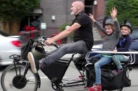There are child bike seats available for adult bikes, so that you can strap your little ones safely on the back or front. Trail-along bikes make it safe for slightly bigger children to cycle with you. Read more here about how to use trail-along bikes and tandems to get your kids cycling safely with you.