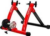 ![]() | People who want a great budget option, in a premium steel trainer for riders up to 265 pounds | Magnetic resistance. Fits any road or mountain bike with a 26-28" or 700c wheel | Simple setup – use the double lock system to quickly lock your bike into place. Steady and stable, with a dual support structure. Adjustable anti-slip rubber feet enable you to set it up on any surface. Front riser included in the budget price. Folds up when not in use. Premium steel construction supports riders up to 265 lb (120 kg) | Usually less than $100; please click here for exact price on Amazon Right Now |