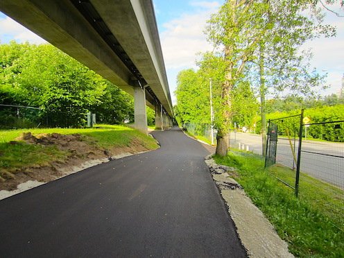 But now the green route above it is complexly repaved and a pleasure to ride on. Turns out they closed the trail in order to fix it!