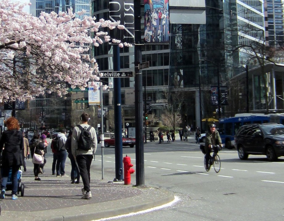Just went out today to photograph some of the beautiful cherry blossoms, and everywhere I went, there were bikes and blossoms – happy days! Here are some photos taken at Burrard and Melville.