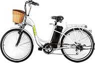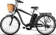 ![]() | Approximately $699; please click here for exact current price | Practical, transport-type ebike, best for people who want a practical but good looking bike for transport and shopping; rated for cyclists up to 250 pounds | 250 Watts motor with 36V/10AH lithium battery; range: up to 28 miles in pedal-assist mode | Ride as a regular bike; or with 2 levels of power assistance for your pedaling; or with throttle power only (no pedaling) | 6 gears; V-brakes on front wheel; expansion brake on rear wheel |
