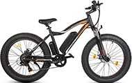 ![]() | Approximately $999; please click here for exact current price | Fat Tire Mountain Ebike, best for taller cyclists; rated for riders up to 250 pounds | 500 Watts motor with 36V/12AH lithium battery; range: 19 miles | Ride as a regular bike; or with 3 levels of power assistance for your pedaling; or with throttle power only (no pedaling) | 7 Shimano gears; Mechanical disk brakes |