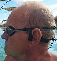 ![]() ![]() | Usually around $230. Please click here for current best price | • 30 g (1.06 oz). • Battery life of 8 hours. • No Bluetooth, because they are designed to be worn in a pool. Bluetooth does not work in water. You need to copy your music or podcasts onto the headphones - and this is easy to do | IP X8. The X means these headphones have not been tested for dust resistance. The 8 means they are fully waterproof for all moisture exposures, including extended swims | Designed to let in all noise, as your ears are completely open | • The neckband plus the over-ear design means they never fall off. You can even dive with them. Possibly not off the high board, but I have not tried this. Can be worn under a swim cap for extra security. • Easily transfer MP3 files to the unit and listen to podcasts, books or music as you swim laps. • Easily switch from swim mode (less bass) to regular mode for cycling or running home from the pool. • As there is no Bluetooth, you cannot make calls with this unit. • Play, advance song and volume buttons are easy to access while you are swimming. |
